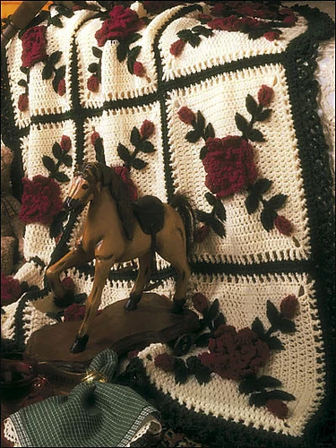Afghan Crochet Blanket with Roses